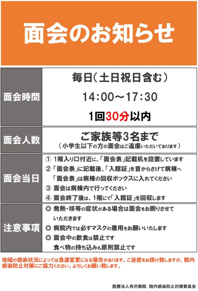 ※面会の際は、必ずマスクの着用をお願いいたします。